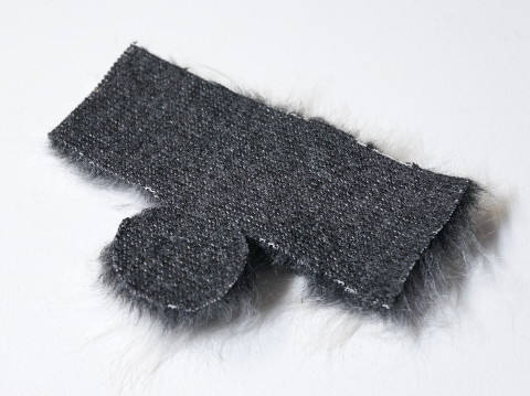 型を出して切り出したフェイクファーをうまくスポンジが包めるように糸で縫う。面倒くさそうだが、実はとても楽しい。