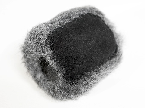 縫い終わったフェイクファーを表に返してスポンジを入れればほぼ完成だ。注意点としてはフェイクファーの抜け毛がレンズ交換の際にカメラ内部に入らないようにすることだ。掃除機とガムテープを使って余分な毛を全て抜いて脱落毛の予防をしなければならない。マイクとレンズの距離が近いため、今回使用したロングファーではレンズ操作の際にファーに指が接触してしまうので毛足を1/2程に刈り込んだ。
