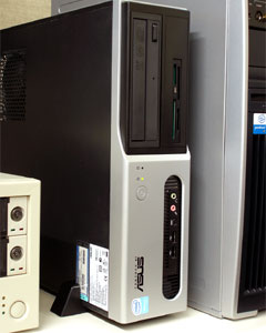 OSをセットアップし、プロダクトキーとセレロンDのステッカーを貼り付けて出来上がりだ。筐体は縦横どちらにも設置でき、ハイビジョン用ワークステーションと並んだ姿が大変かわいらしい。