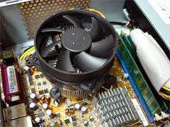 CPUはセレロンD/2.53GHzだが、ペンティアムDと同じ銅芯のヒートシンクにリテールファンより一回り大きなファンが付けられたものが付属していた。セレロンDのリテールファンよりも効果が期待できる。