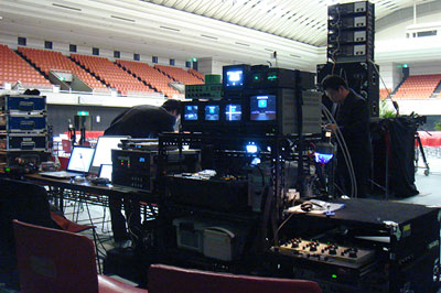 制作依頼といえば今日行われた某社の株主総会の中継はこのブログとホームページが生んだ仕事である。依頼主はずっと以前からこのブログを読んでいてくれ、「いつか一緒に仕事をしたい」と思っていてくれたそうだ。そして今日現場で「ブログに写真がのるのが夢なんです」とも。まぁほとんどお世辞ではあるが、上の写真にこっそりと写りこんでいる人物が制作責任者のY氏である。ただし、案件が株主総会ということで主催社名や会場名は機密保持から当然伏せざるを得ない。次回の現場では是非私とのツーショットを決めたいものである。今回はツーショットの変わりにあと1枚、キャメラの写真を載せておこう。