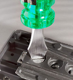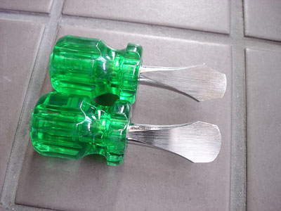 加工は簡単だ。市販のコインドライバーを下のように削って加工する。