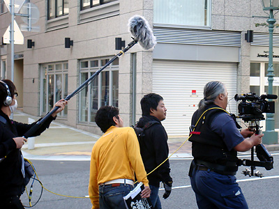 写真は先日の神戸ロケの一コマ。風が吹いてもマイクが吹かれることは皆無である。