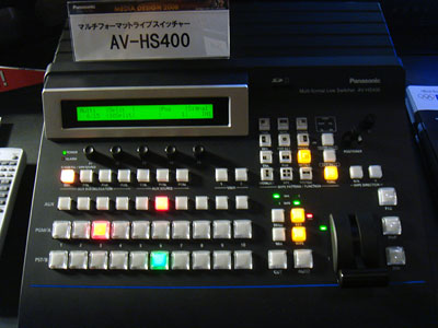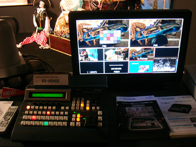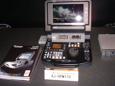 新製品のAV-HS400だ。価格も安く、業務用の中継現場には手ごろな製品だ。P2関係で目新しいものは無かったが、P2対応のVSR(私の造語でVideo Silicone Recorderの意味)やP2ギアが興味深い。