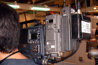 制作依頼といえば今日行われた某社の株主総会の中継はこのブログとホームページが生んだ仕事である。依頼主はずっと以前からこのブログを読んでいてくれ、「いつか一緒に仕事をしたい」と思っていてくれたそうだ。そして今日現場で「ブログに写真がのるのが夢なんです」とも。まぁほとんどお世辞ではあるが、上の写真にこっそりと写りこんでいる人物が制作責任者のY氏である。ただし、案件が株主総会ということで主催社名や会場名は機密保持から当然伏せざるを得ない。次回の現場では是非私とのツーショットを決めたいものである。今回はツーショットの変わりにあと1枚、キャメラの写真を載せておこう。