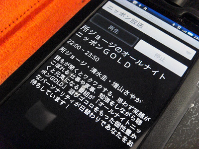 もう一つがアンドロイドで走るRAZIKOだ。エクスペリアにインストールすれば何故か聴取エリアが大阪ではなく関東になる。