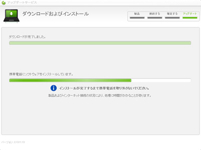 サイトからダウンロードしたUpdate Serviceを起動してその手順に従うだけで難しいことは無かった。約15分ほどの作業だった。