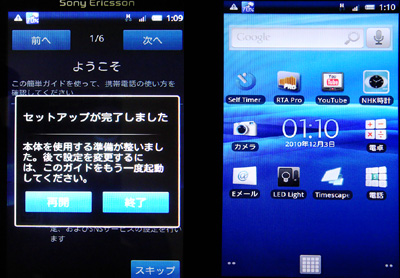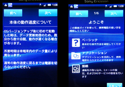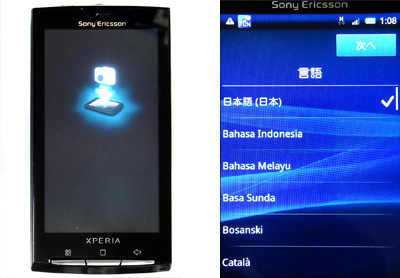 エクスペリアが再起動されると普段見ないデスクトップが現れてアップデートが実感出来る。起動後自動で設定メニューが現れる。