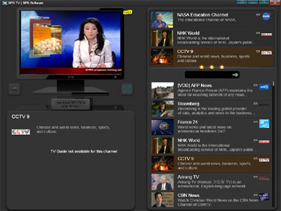 NHKの国際放送【NHKWorld】なども見ることが出来るし、中国中央電視台の国際放送【CCTV9】やNASA TV、Sci-Fi TVなど150chの放送がある。アンドロイドでは有償版でなければ全CHを見ることが出来ないものがWindows版(BETA版)では全て視聴できる。