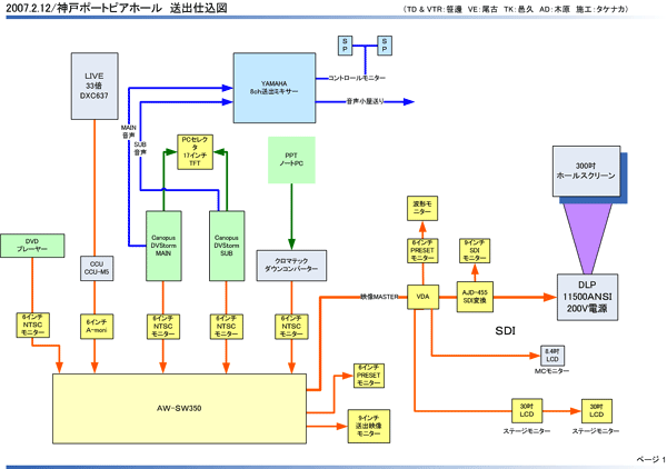 下は神戸行ったイベントの仕込図だ。PC2台とライブキャメラを用いている。