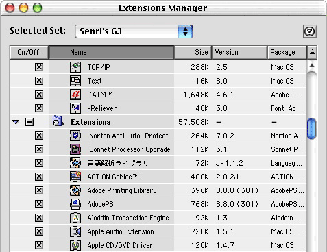 SonnetのG4カードを使うには機能拡張が必要で、これまでVer.2.3.1だったが、Sonnetのサイトへ行ってみると今年の6月にVer.3.1がリリースされていた。半年ほど前である。ハードウエアベンダーのサイトも時々はチェックしなければならないと再認識した。インストールし、再起動したが不具合も無く順調である。機能拡張マネージャーを確認した画像のようにVer.3.1になっている。「未だにMT使ってるんですか?」と聞かれるが、メールや写真の処理だけではなく、見積書や請求書もこのG3改G4がクラリスワークスでやってくれている。速度も特にストレスは無く、メールに添付されてくるWindowsを狙ったウィルスには影響を受けない。不満といえばPDFを開くにはOS9環境は辛いということくらいであろうか。しかしそれもWindowsとファイル共有していることで解決している。