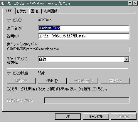 起動してきたものがW32Timeである。これを自動に変更し適用をクリックする。