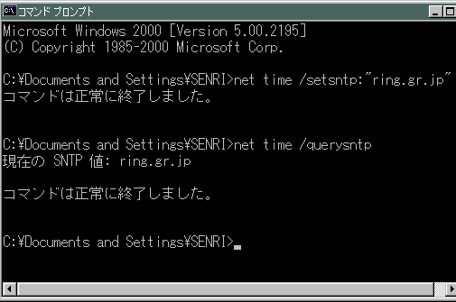 普段コマンドプロンプトは使わないが、時にDHCPを開放したりするときに使用する。今回はWindows2000をXPのように時計をタイムサーバーに自動同期させるためにこの作業を行った。この機能は2000が元々持っている機能で、2000をベースにしたXPではそれが使いやすくなっていただけである。