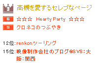 ホタルの話はさておき、このホタル関連の記事でブログランキングが以上に上がってしまった。昨日はなんと15位である。15位にランクされて600=15位ということは10位以上はいったいどれほどのアクセスがあるのだろうか。私の15位はイレギュラーとしても、「高槻を愛するセレブなページ」や「京都人の 抹茶とお芋」「NYの衣☆食☆住(旧梅田OLごはん事情)」等、常に上位に入っているブログへのアクセスはものすごい数字であることは確かだ。
