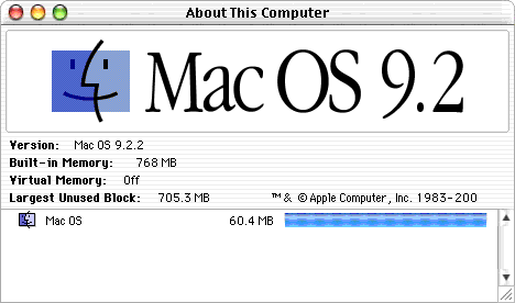 悪いっても決して致命的なものではなく、月に1度程度、突然爆弾を出すくらいで、サッドマックが顔を出すことは無い。可愛いものである。元々Power Macintosh MT266というアイボリーの初代G3でCPUのクロックが266MHzだったものをSonnetのG3/500MHzに換装し、数年前に同じくSonnetのG4/733MHzに換装して使ってきた。OSはデベロッパー向けの9.0USをアップデートした9.2.2である。