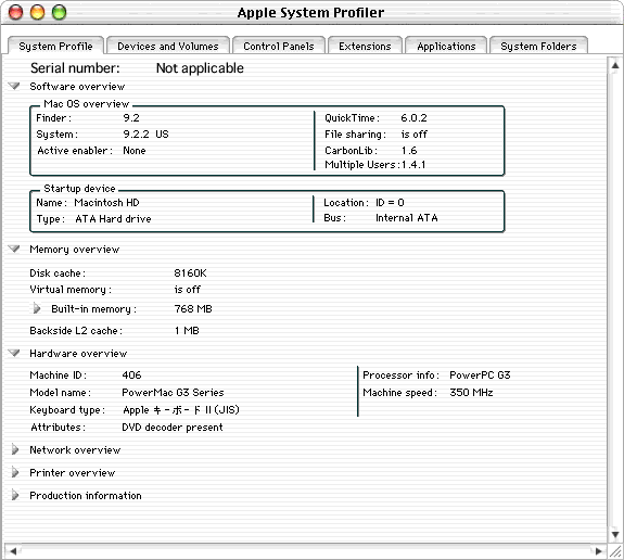 Apple System Profilerではこういう風になる。(クリックすると別ウィンドウに等倍で表示)
