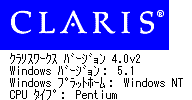 私が使っているクラリスワークスはMacOS9英語版上で4.0V4が走り、WindowsXP上では4.0v2が走っている。オリジナルのWindows版は4.0v1で、2000やXPで使う場合はV2にしなければ不具合がある。このアップデータはAppleのサイトからダウンロード出来る。ただしWindows版クラリスワークス4.0v2アップデータはXPでは動作せずエラーになってしまう。Windows2000では問題なくアップデートできたため、私はWindowsXPがインストールされたPCにWindows2000をインストールしてデュアルブートにすることで対応した。Windows2000を起動し4.0v2アップデータを立ち上げる。そしてXPが入ったディスクのProgramにあるクラリスワークス4.0をv2にアップデートする。いたって簡単な方法だがこれでWindowsXPでクラリスワークスが調子よく使える。