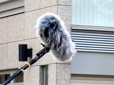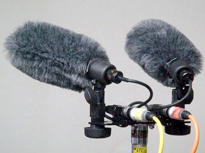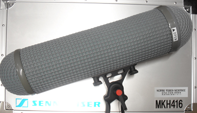 屋外で風が強い場合は籠にジャマーを被せたMKH−416なども使う。