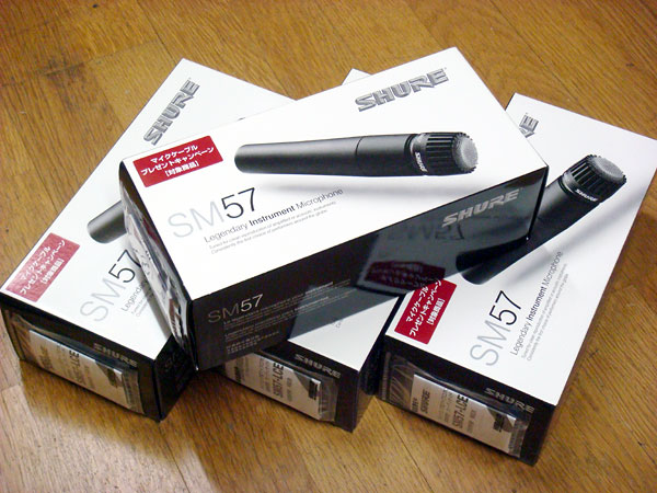 どちらかといえばコンデンサー型のマイクをよく使うが、ダイナミック型のSHURE SM−57はPA用として有名だがオーディエンス用としても十分使えるマイクだと思う。以前PAさんにお借りした時に気に入って、今年4本購入した。