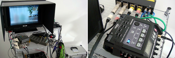 モニターはHDMIをHD-SDIに変換して、カメラ用に7.9インチ液晶、技術用にCRTの9インチのD9H1、制作用にHD-SDI対応の17インチ液晶を用意する。