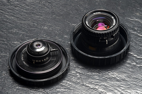 左がキヤノン20mmF3.5でマウントはRMS。右はELニッコール50mmF2.8のNEWタイプ。また、最近手に入れたコダックのエクターレンズ(1954年製の引き伸ばし用レンズEastman KODAK Enlarging Ektar 50mm f4.5)などでも好結果を得ている。1954年というのは私が生まれた年である。