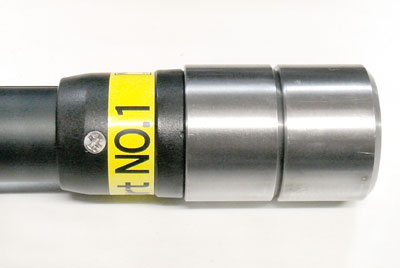 竿のグリップエンドに2個のウエイトが付いた状態の写真だ。Van Den Bergh(ヴァンデンバー:vdb)のマイクブームポールは標準的なものでも6〜7万はするので長尺の竿が必要な場合は機材屋のレンタルで間に合わせ、普段はスリックの一脚を改造したものを使用している。普通のENGではこれで十分というか、とても使いやすいし価格も数千円だ。ただしマイクに対して竿が軽すぎるために片手で保持するには手首の負担が大きく、とても辛い。そこで今回のウエイトを考えた。