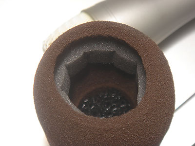答えは定番インタビューマイクのSHURE SM-63Lのウインドスクリーンだ。単なるスポンジのようだが、購入すると1個2000円近い。そして圧迫された状態で保管すると変形した状態から戻るのに時間がかかり、古くなると形状を記憶してしまう。