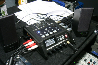 この時もそうだし、それまでの現場も全てR-44をミキサーとしても使用している。イレギュラーな使用方法かも知れないが、R-44のRCA出力をmonitorから4-indivにすることで4in/4outのミキサーとして使用できる。DVCAMのDSR-45とは相性がいい。