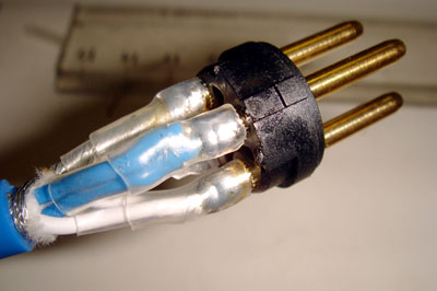 上は出来上がったキャノン(XLR)コネクターである。内部の半田付けは下のように行っている。