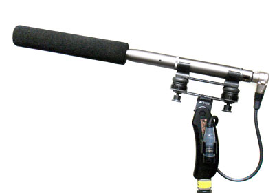 ゼンハイザーのMKH-416にライコートのソフタイが付いた状態でけっこうバランスがいい。片手で竿を持った場合にもバランスが取りやすくなり、反対の手でENGミキサーの操作が出来る。ホールドポイントから竿のエンドまでの距離が短くてもバランスよく保持できるようになった。スタッフいわく「エンド部分に見えない竿があるみたい」ということだ。