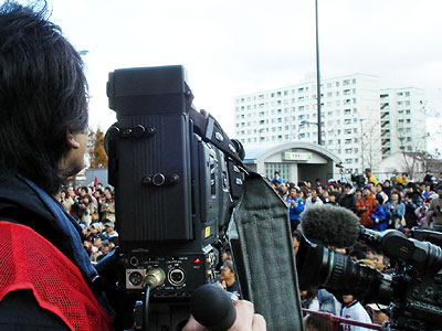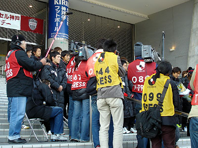 昨日の結果が反映して大勢のサポーターが訪れた。今回の取材ではクリアーな音声は当然だが、サポーター達の歓声、リアクションが重要になる。