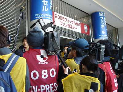 三浦選手の囲み取材ではすかさず正面に構えたMキャメラマンのキャメラ前に屈んで下からガンマイクを向けて生声を録る。今日の仕事はJ's GOALで配信される。また12/8に同じくヴィッセル神戸を取材した練習風景や三浦淳宏選手のコメント、松田浩監督のコメントが配信されている。