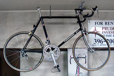 バブリーな時代にバブリーな製品を作っていた。スギノ75のカーボンモデルなども出たいたが、このロイヤルグランコンペ、いかにもゴージャスだ。下の写真がこのロイヤルグランコンペを搭載した前後24インチのクリテリウムである。チェーンホイールはスギノスーパーマイティーでFDはサンツアーのスプリント。大径のスーパーマイティーとは相性がいい。当時はサドルにサンマルコロールスをつけていたが、ロールスの緊箍児(きんこじ)の輪のみたいな金環とのマッチングがいかにもバブリーであった。これを付けて速く走れなければ恰好が悪い。そのプレッシャーが意外とトレーニングには役立った。