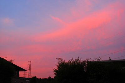 最近空を見上げることが少なくなったと思う。天気予報の確率が高くなり、観天望気の必要が無くなったからだろうか。昔は観天望気だけではなく、臭いや湿り気、植物や動物等、自然の変化に雨の兆候を感じたものだ。その話はまた別にして、今日の夕空は見上げずには居られなかった。