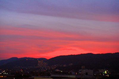 箕面山の空が燃えていた。明日も相変わらず暑い日差しになると思うが、大気は少し不安定な気がする。雷に注意しよう。