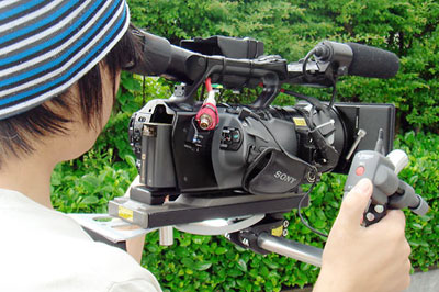 とすれば、HD-SDI出力を用いてマルチキャメラ収録だろうか。最近プロテックなど数社から小型カムコーダーをEFP運用するためのドック(正式な名称ではない)が売り出されていて、プログラムタリーやリターンビデオにも対応できるそうだ。たしかにソニーはこういった周辺機器を現在発売していない。それよりも展示会のソニーブースにそういったサードパーティーの製品を使った状態で展示しているくらいだ。担当者曰く「こういう周辺機器をソニーが作るよりも開発から製品化まですべてお願いした方がコストも安くなります」だそうだ。たしかにそうだろう。現状の業務用ユーザーの数×今すぐHD化を望む業務用ユーザー数を考えると大手メーカーのラインには流せない。