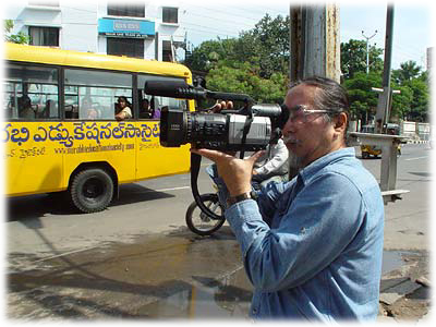 一緒にハイデラバードへ行ったM氏。仕事の合間にDVXでスナップしている。