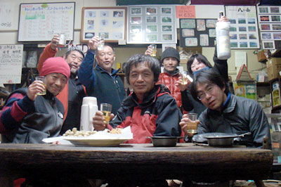 小屋でなじみの常連さん達とストーブを囲んで盛り上がる。私も含め、白い粉に狂ってしまった人たちである。