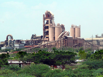 座標のある地点にはインドセメント社のビシュヌプラム工場だ。NEDOの関連で現地のプラントの撮影をしていた。航空写真から自分が行った場所を特定するのは容易ではないが楽しい。また、グーグルアースを使えばアングルを変えて眺めることも出来る。下の写真はプラントを外から撮ったもので中央にひときわ高い塔が立っている。この塔を登ると南インドの地平線が見渡せる。