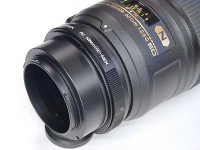 絞り環の無いニコンのAFレンズの場合ソニーのEマウント(NEXマウント)では普通のマウントアダプターだと絞り値が最大(最も暗い)まで絞り込まれてしまうので使えない。