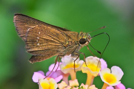 Bellows-Takumar 1:4/100mmで撮影したランタナの花に寄るセセリ蝶だ。大きなサイズもアップしておいた。古いレンズだが良く写る。
