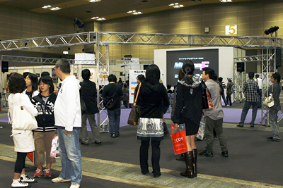インテックス大阪で開催されているANIMICSだ。会場のエントランスに設置した大型映像や各ブースのプラズマモニターを全て引き受けた。