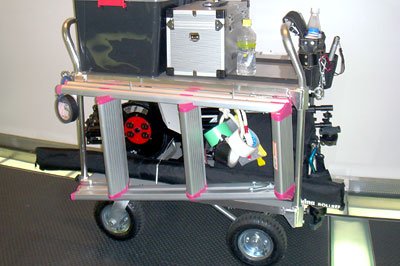 かなり改良を加えて、そろそろ商品化出来そうなレベルに達してきた。今日は一般発売に先駆けてマグパッチカートの全貌を紹介・・・・といきたいところだが、そんなつもりは無い。売っていないから作っただけの総アルミ製二段式カートで、目的は撮影現場での移動時にスタッフの負担を軽減するためだ。