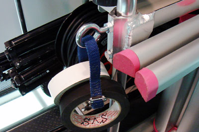 これは脚立の反対側に付けたフック。ビデオではケーブルを掛けるために使用する。アイデアを形にしていく作業が面白く楽しいのがD.I.Y.の世界だ。