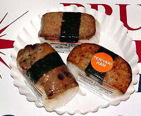 写真はハワイでポピュラーなTERIYAKI HAMとSPAMのOMUSUBI