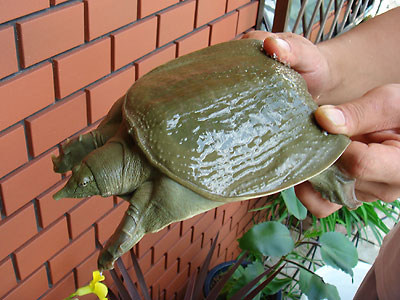 お盆の間にスッポンの水槽を掃除した。甲長数センチの時に鹿児島で捕獲したスッポンの赤ちゃんが3年でここまで大きくなった。扱いには注意が必要だ。