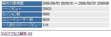 8月のアクセス解析結果である。ニッパチということと、盆休みの影響で普段より2割ほど落ちている。