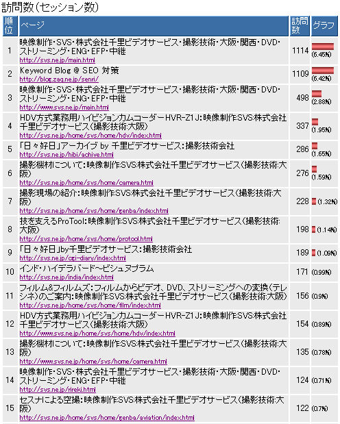 第三者からの検索キーワードは基本的に社名ではないが、こういった社名のようなキーワードも有りえるようだ。「千里ビデオセンター」という企業は存在しないが「ビデオサービス」という映像機器レンタル会社が東京にあり、笹邊も何度か電話をした事のある営業所が高槻にある。ところがこの「ビデオサービス」をヤフーで検索すると私の会社がトップに挙がり、ビデオサービスさんは4位になっている。こういうことが起こるからインターネット社会ではSEO対策が非常に重要になる。別に私が「ビデオサービス」というキーワードを仕込んだわけでもなく、また検索エンジンに細工も出来ない。要はテキストベースで書くホームページの強さではないだろうか。