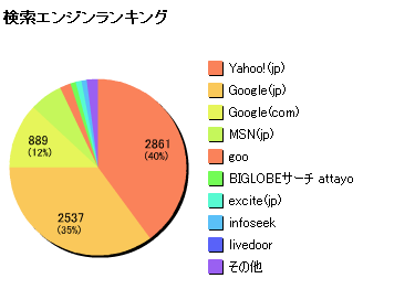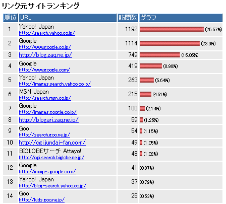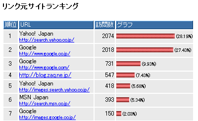 検索エンジンの方はやはりヤフーがトップになるが、Google.co.jpとGoogle.comを合計すればGoogleが最も多い。残念ながらMSNはかなり落ちる。リンク元のサイトを見ると下の画像のようになる。