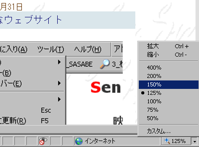 「バリアフリーなウェブサイト」のPart2だ。10/31の記事で「ブラウザで文字のサイズを変更できない」と書いたがInternet Explorer 7を使うとWEBのサイズを自由に可変できる。